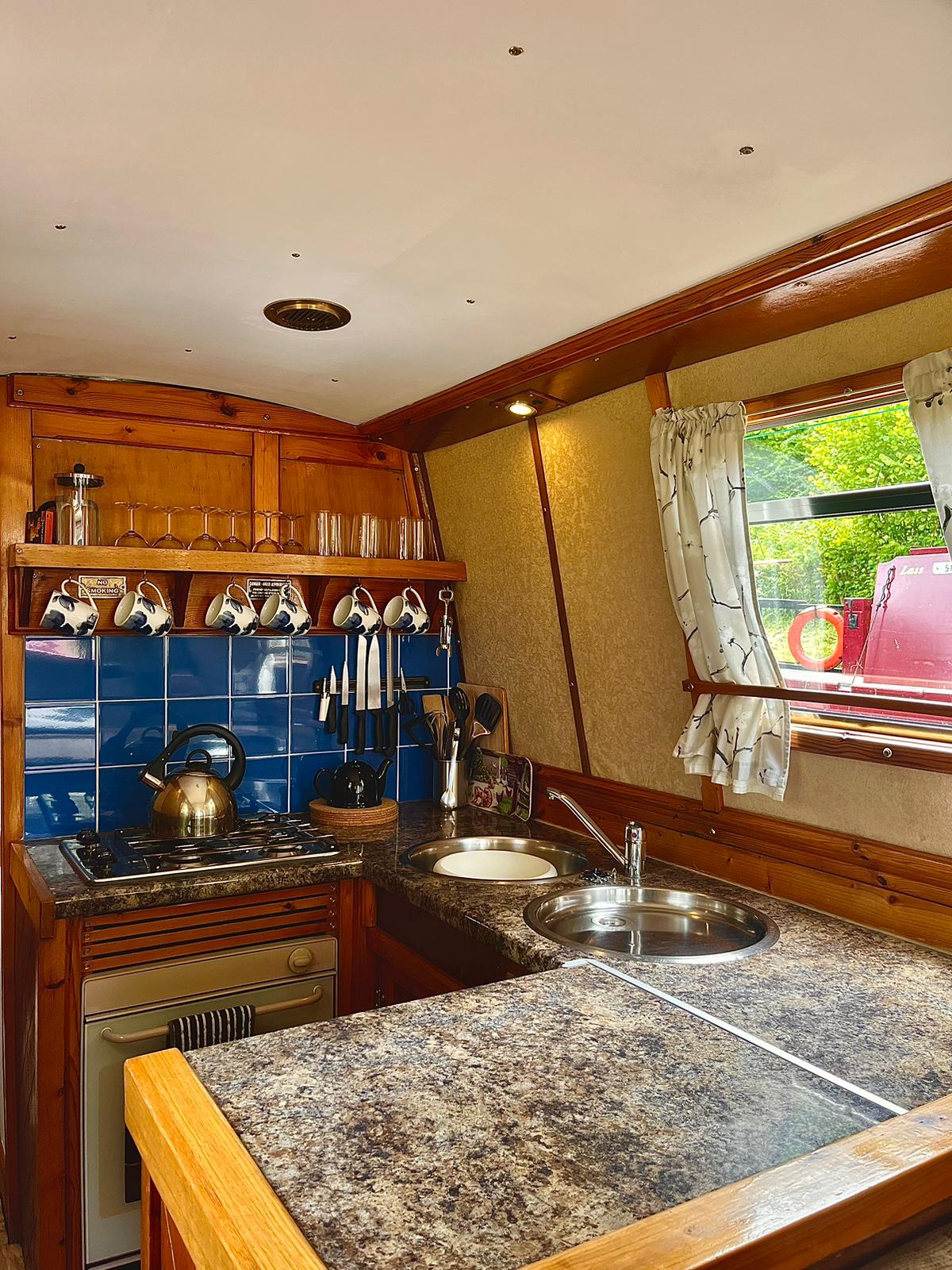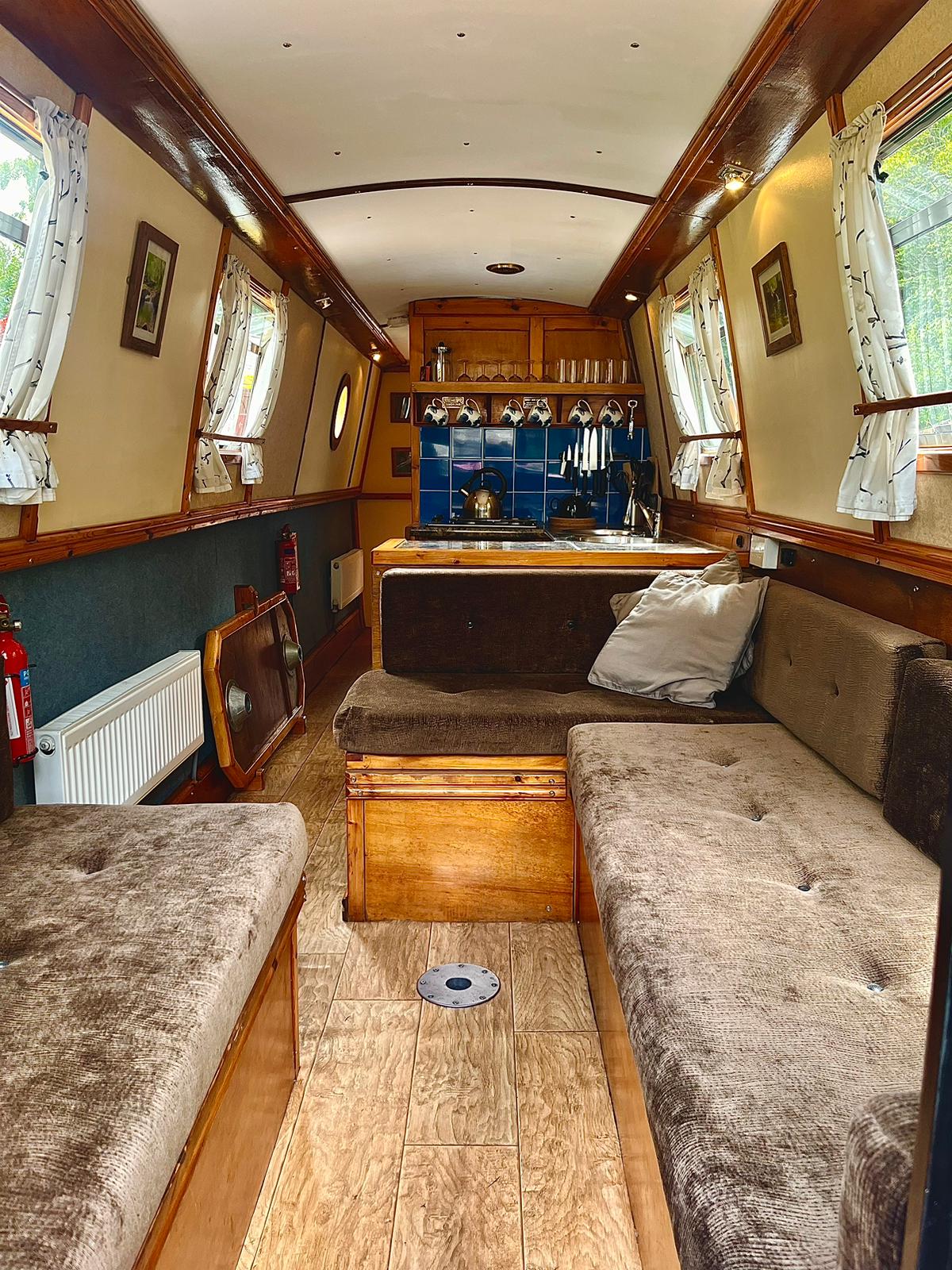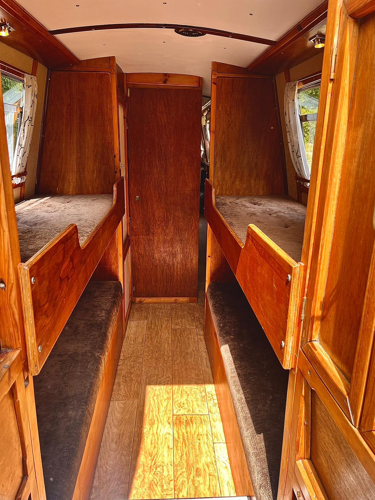 45 foot, 6 berth, 4 bunks to rear – top bunks more suited to children. Convertible double in lounge.